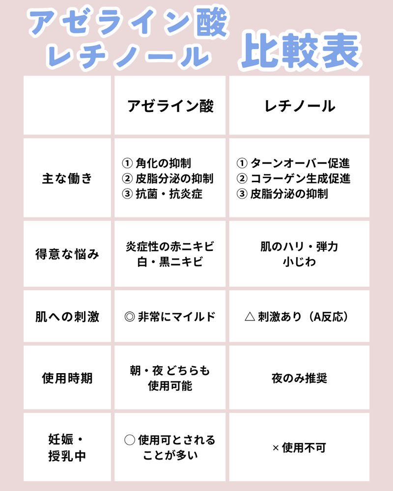 【徹底比較】アゼライン酸 vs レチノール 早わかり比較表
