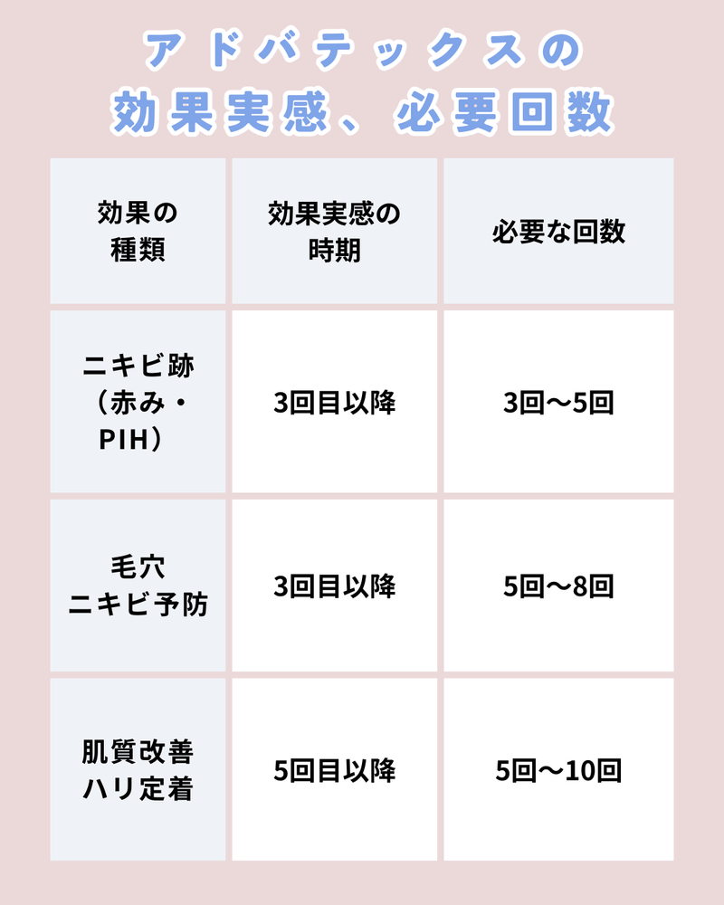 アドバテックスレーザーは、「施術直後から効果を実感したい」というニーズと、「根本的に肌質を改善したい」というニーズの両方に応えることができる、バランスの取れた治療法です。
