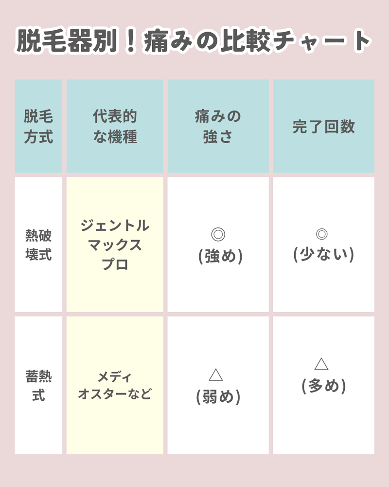 脱毛器別!痛みの比較チャート
