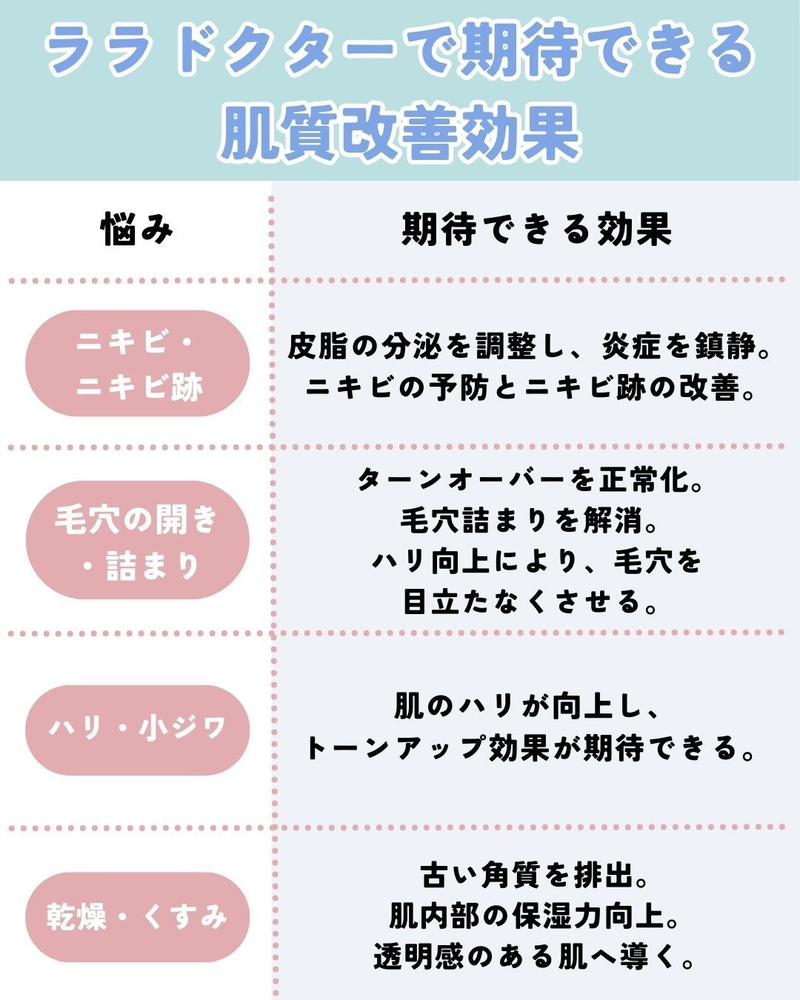 ララドクターで期待できる肌質改善効果
