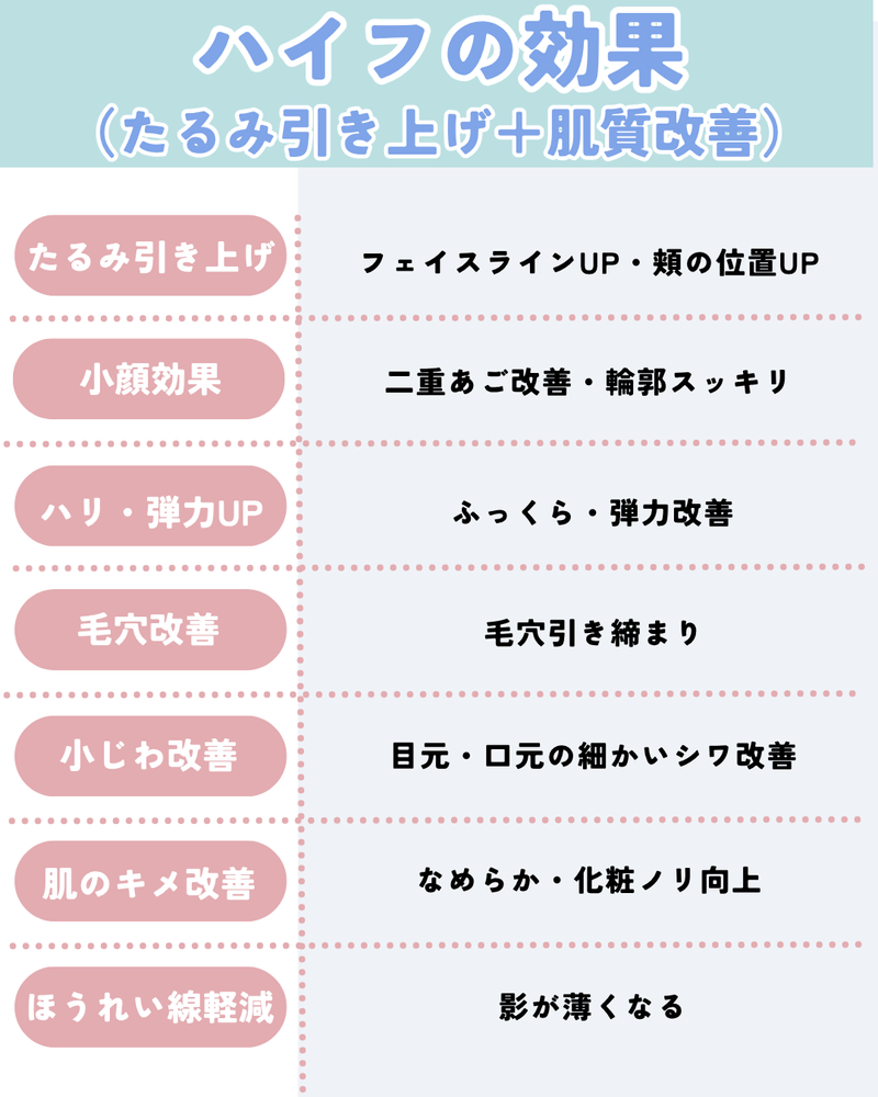 ハイフの効果がすごいと言われる理由は、 見た目の変化が大きく、肌の品質まで変えてくれる からです。