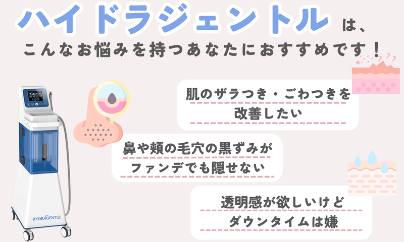 その代表格が「ハイドラフェイシャル」と、当院が導入する「ハイドラジェントル」です。