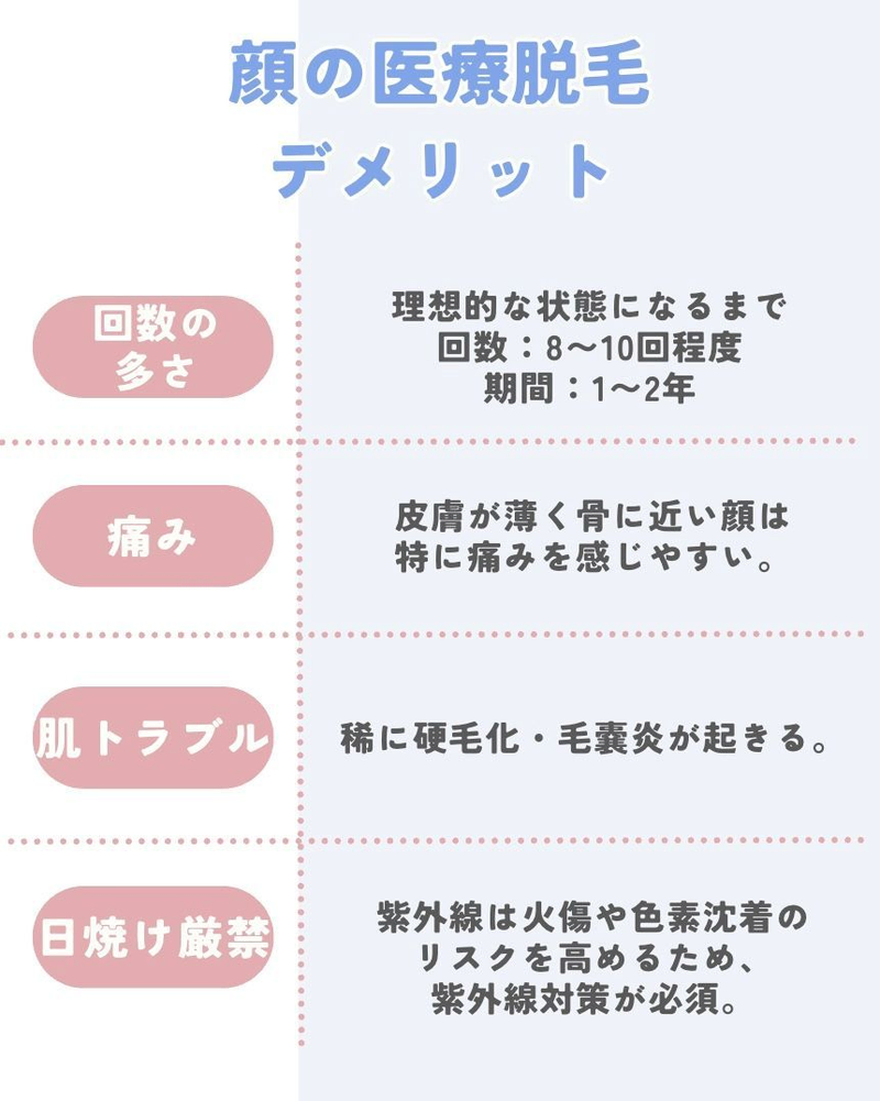 顔の医療脱毛にはメリットとデメリットが存在します。