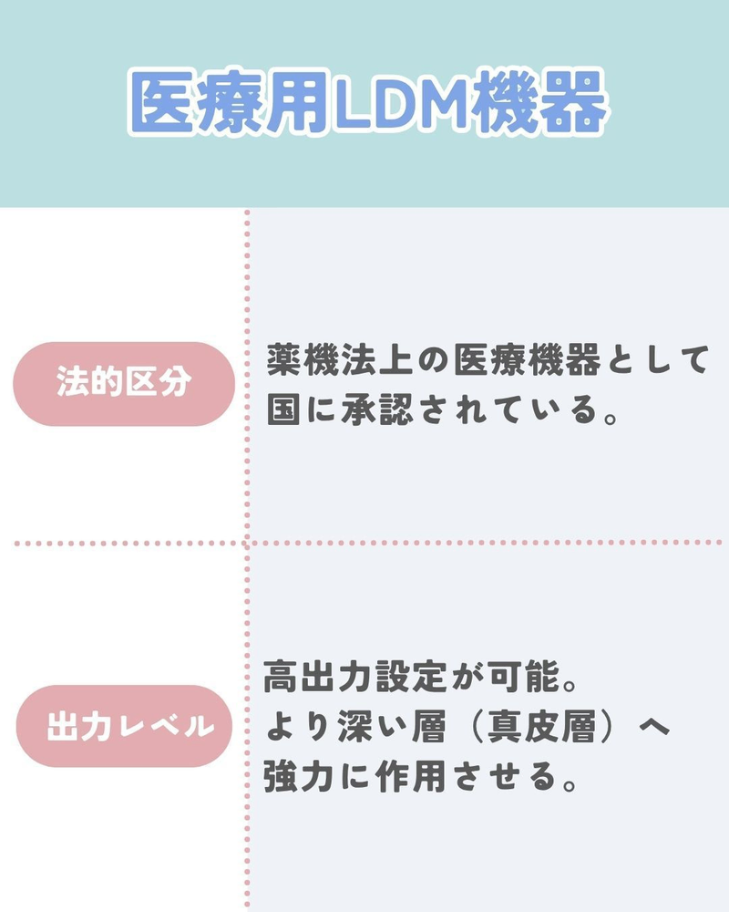 美容分野で「LDM」と称される機器には、大きく分けて「医療用」と「エステ用」の2種類が存在します。