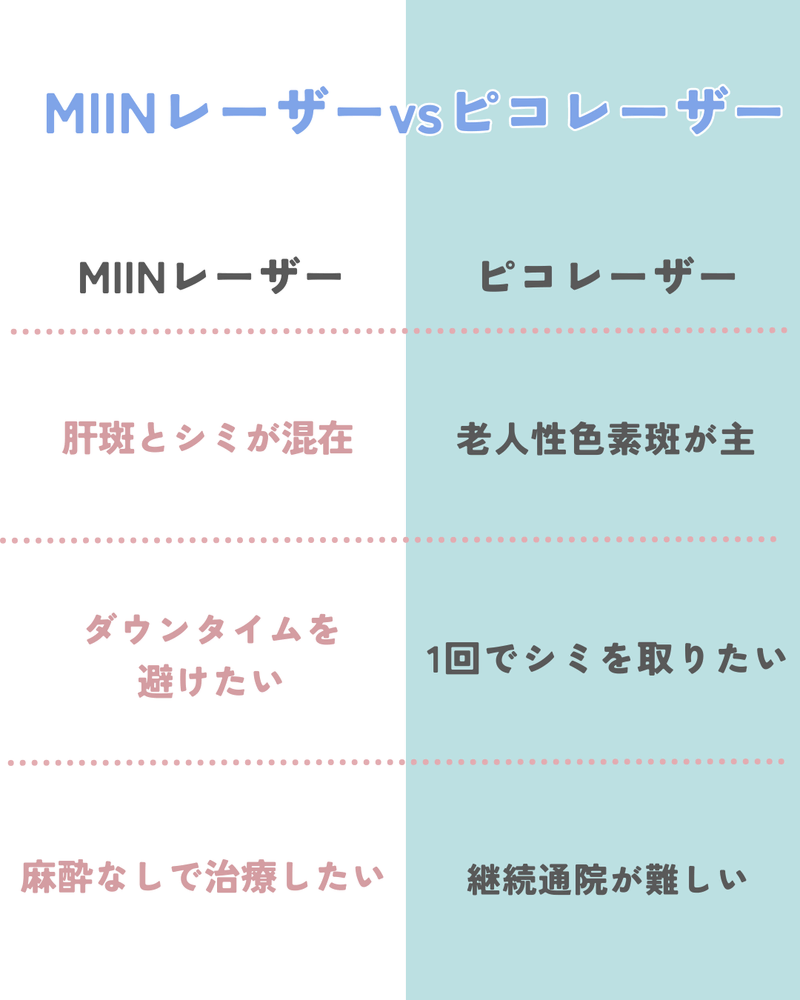 MIINレーザー vs ピコレーザーを徹底比較!シミにどちらを選ぶべき?