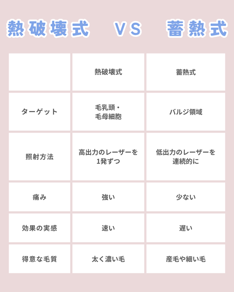 比較的幅広い毛質に 対応でき、 熱破壊式の中でも 痛みが穏やか な機種 が多い。 |
