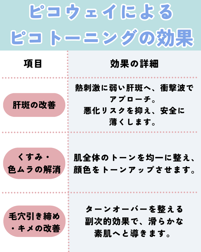 ピコウェイによるピコトーニング:低刺激で叶える透明感と肝斑治療