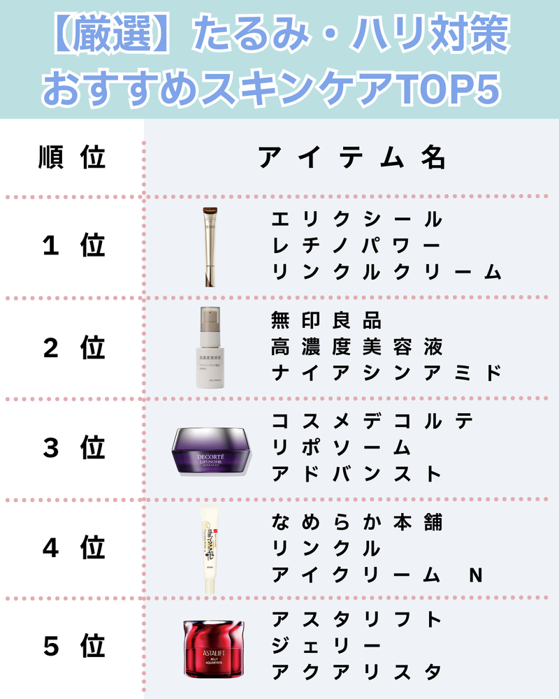 3. 【予算・目的別】たるみ・ハリ対策のおすすめアイテム厳選リスト