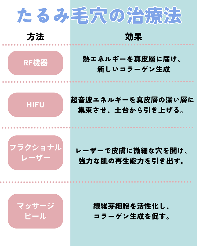 Q1. たるみ毛穴の治療として、高周波(RF)機器が特に推奨されるのはなぜですか?