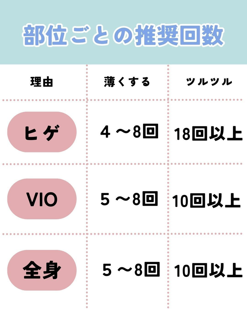 | 目的 | 目安の 回数 |